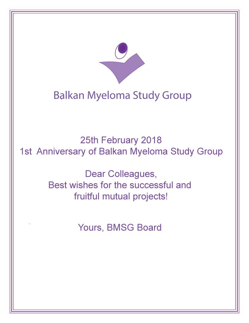 Expecting your support for the initiative of forming a unified haematological network in research in the field of multiple myeloma and associated plasma cell disorders, Best regards on behalf of the Balkan Myeloma Study Group.