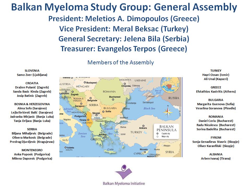 BMSG constituent bodies are the General Assembly and Steering Committee, which consists of eminent experts in the field of multiple myeloma and associated disorders of plasmacytoid lineage from different haematological centres in Balkan countries.